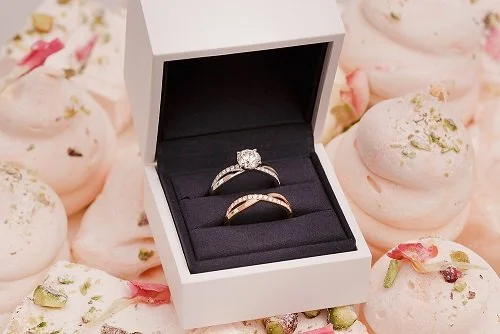 Platinum and diamond De Beers ring with Victoria Made desserts