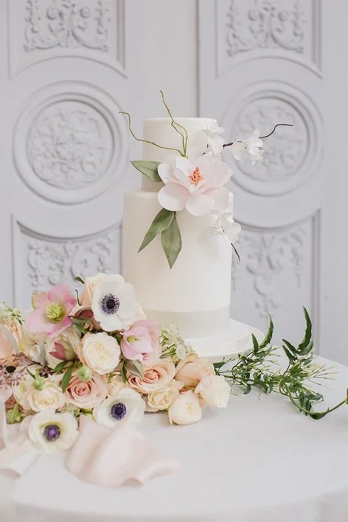 I was also asked to create a small two tier wedding cake in the same colours and some green foliage to contrast.