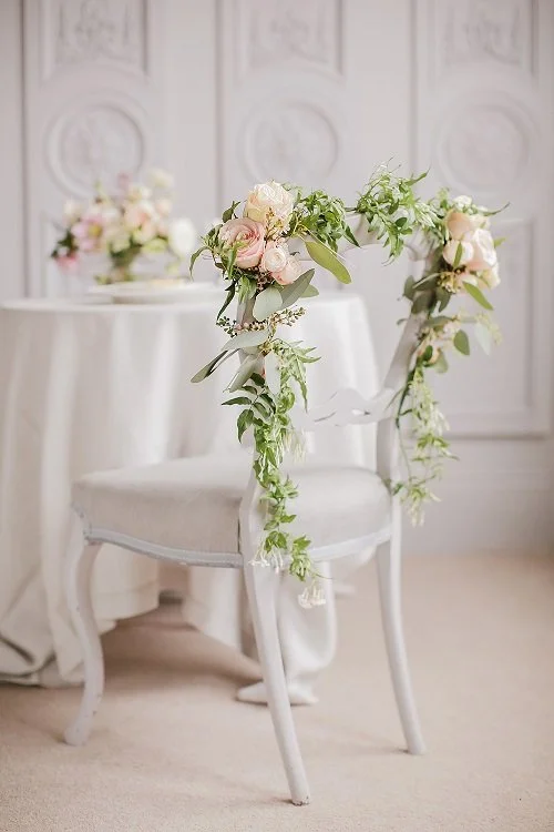 I went for a large peony style bloom with some delicate white blossoms and pale green leaves.