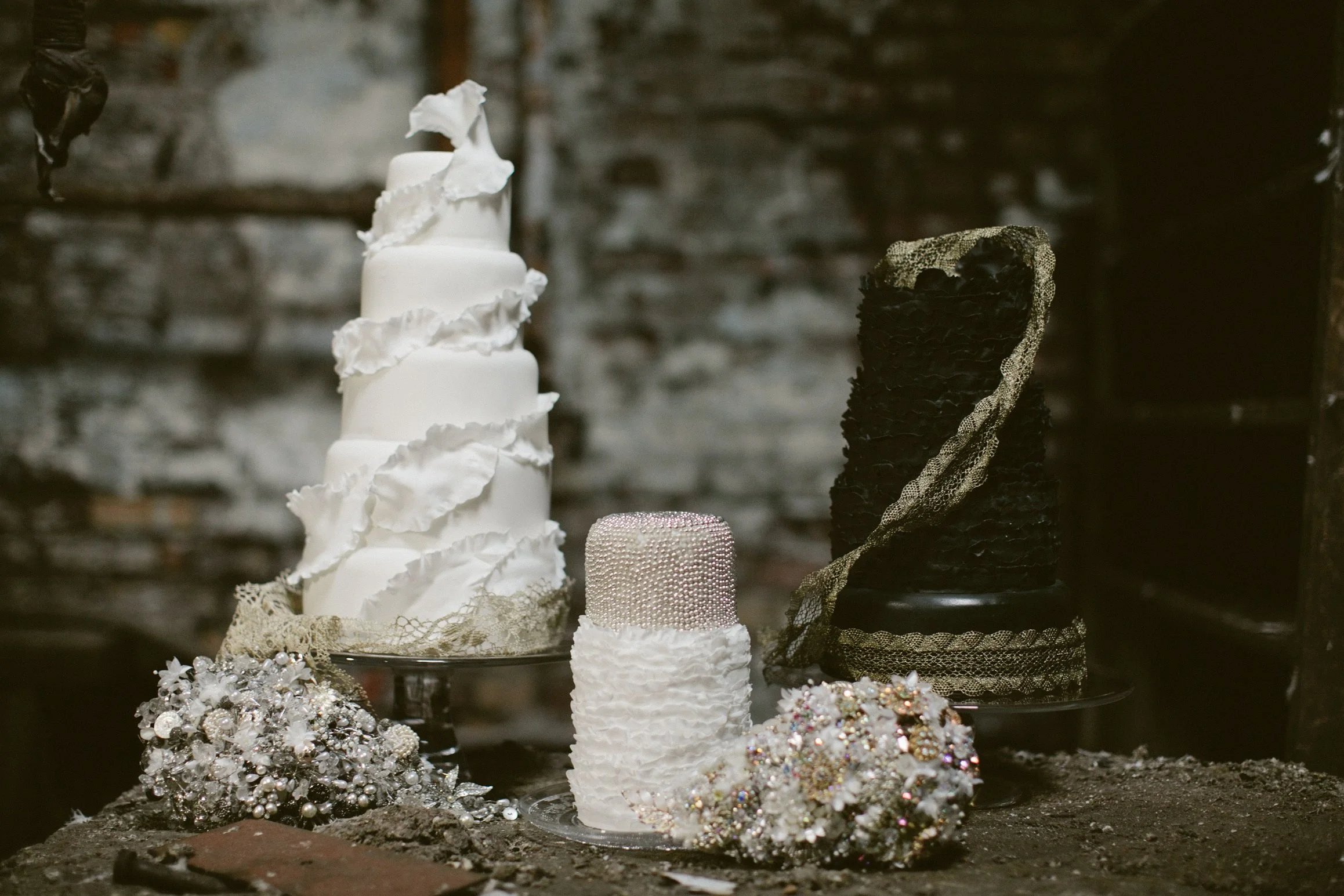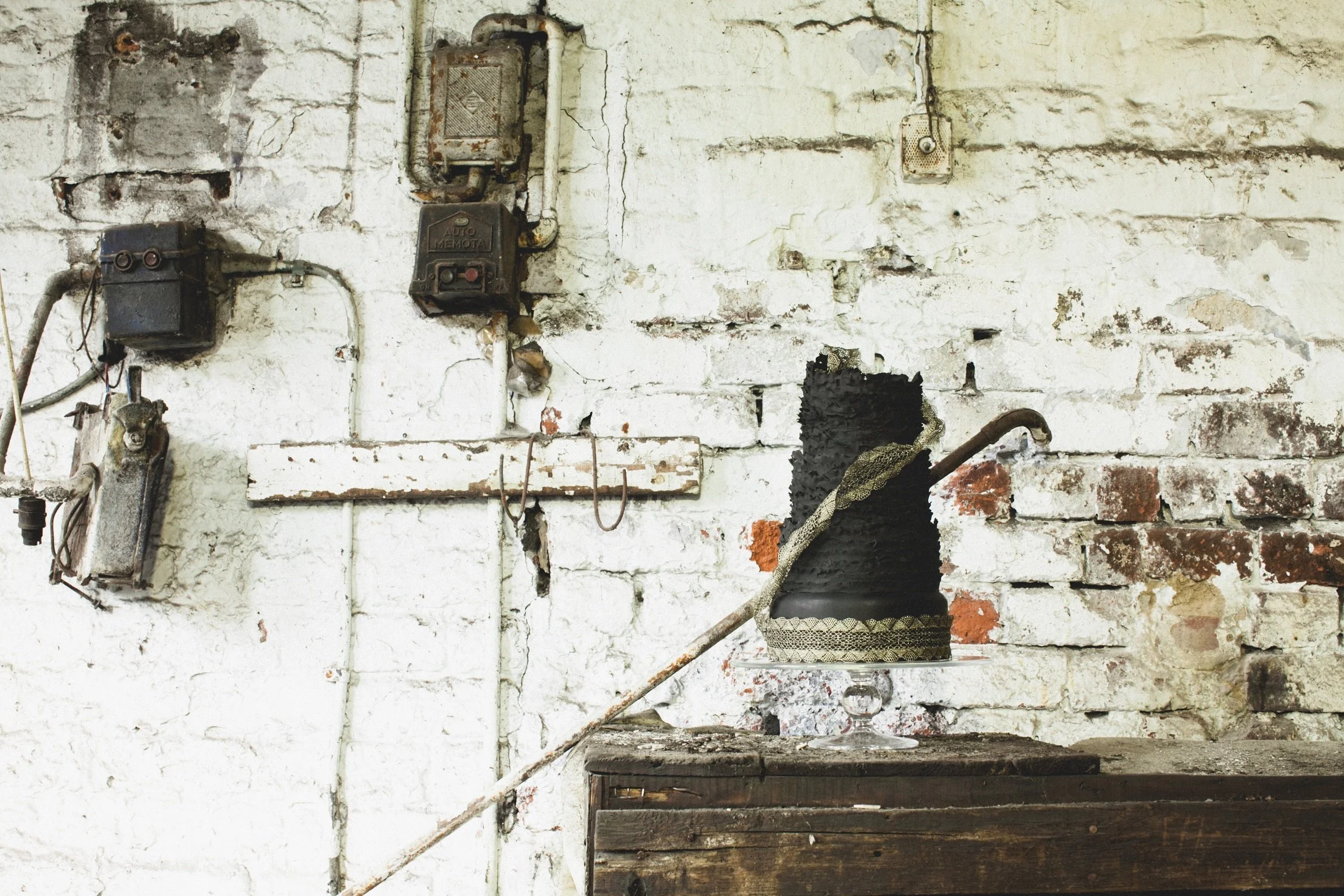 I’m not sure why my brain would choose a place like that for the backdrop for a wedding shoot, but I really do think the juxtaposition of the delicate wedding dresses, cakes and bouquets against the dirty temple to previous industry works to stunning effect. Old Sheffield industry meeting new.